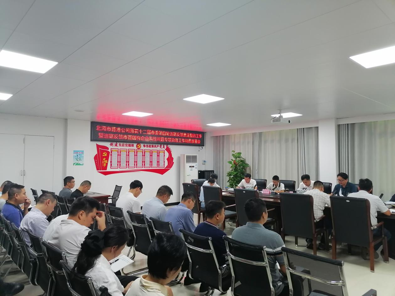 11月6日,市路港公司在公司五樓會議室召開落實十二屆市委第四輪巡察反饋意見整改工作暨巡察反饋市直國有企業(yè)共性問題專項治理工作動員部署會,黨委副書記、總經(jīng)理李忠主持,黨委書記、董事長羅遠(yuǎn)鵬作動員講話,公司中層及以上干部參加會議。