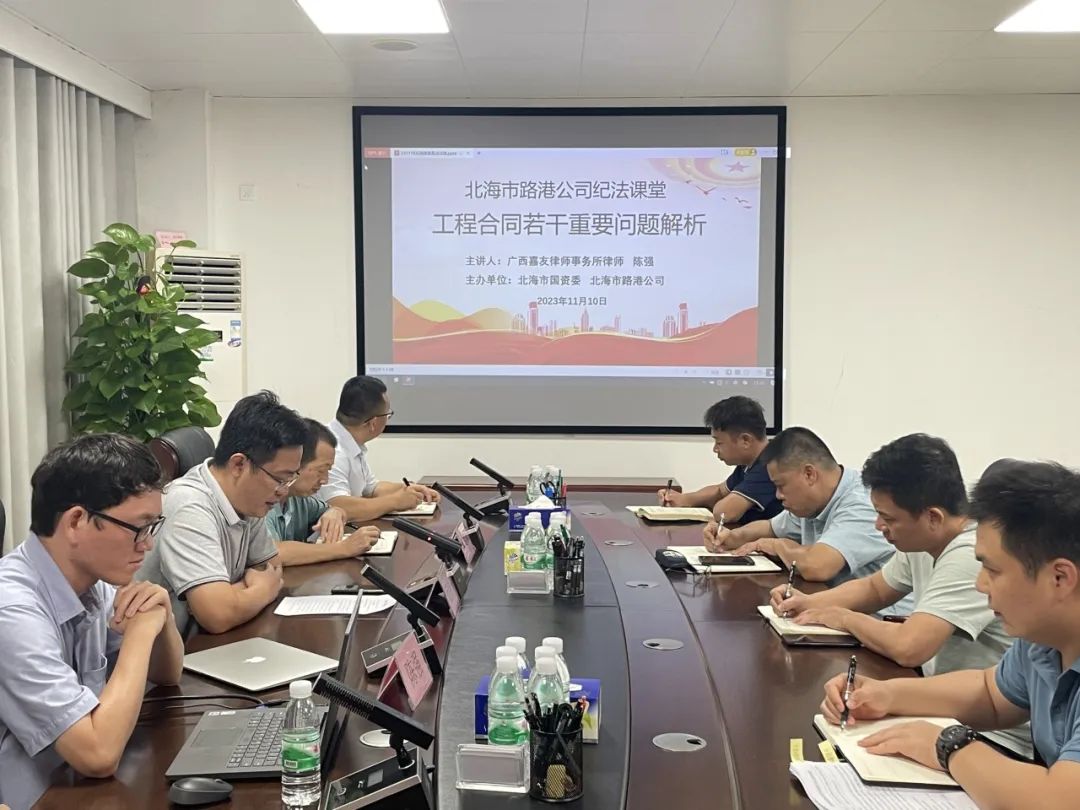 11月10日,北海市路港公司在公司五樓會(huì)議室舉辦紀(jì)法課堂專題講座,特邀廣西嘉友律師事務(wù)所陳強(qiáng)律師作題為《工程合同若干重要問(wèn)題解析》專題講座。公司工程一部、工程二部、發(fā)展部等7個(gè)部門50余人參加。