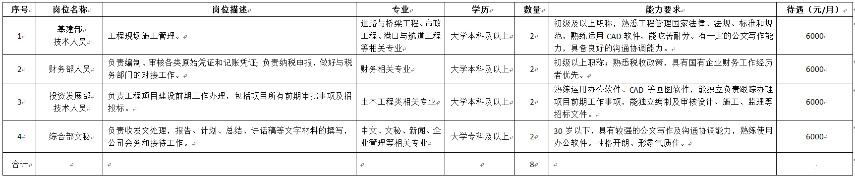 (一)北海市路港建設(shè)投資開發(fā)有限公司2022年擬招聘人才崗位信息表